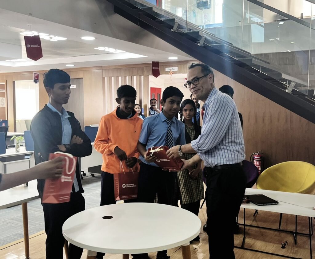 On December 8th, two aspiring student teams from Government High School, Bengaluru, stepped out of the classroom and into the corporate world with an enriching visit to the Rockwell Automation office. Accompanied by ISF mentor Tejaswini H, this visit offered students a rare glimpse into the workings of a global technology giant.